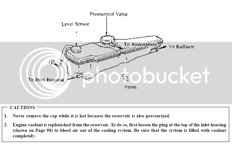 And under the description of the reservoir, you can see Lexus' caution note, where they mention deaerating the system by using that plug on top of the inlet housing: