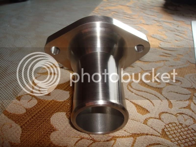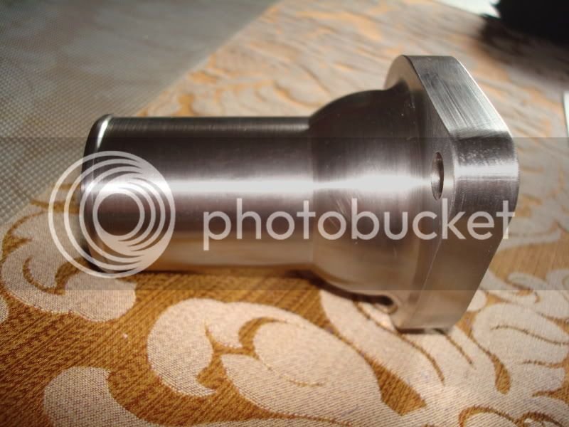Here is a pic of the water nect that Shane Ligon made from billet stainless, modified and angled it, as well as polished it for me. It also works quite well and remedied the coolant leak from the previously welded and poorly fabricated water neck from another guy: