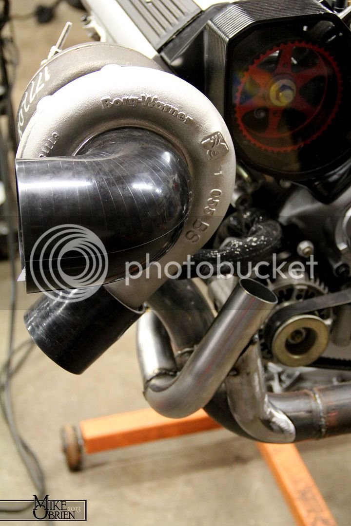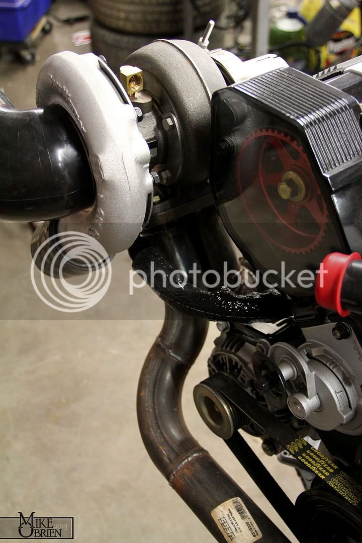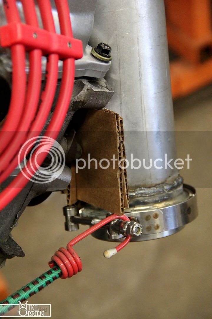 With the wastegate positioned, the wastegate exit received a bellow, and is sneakily squeezed between the engine and turbo on it's way to the main exhaust.