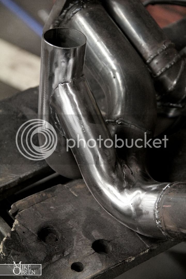 The second downpipe section receives a small flex bellow. I separated the downpipe into two pieces since the fit is so tight in the engine bay. It would be impossible to route a one-piece downpipe and have it be removable with the engine in place.