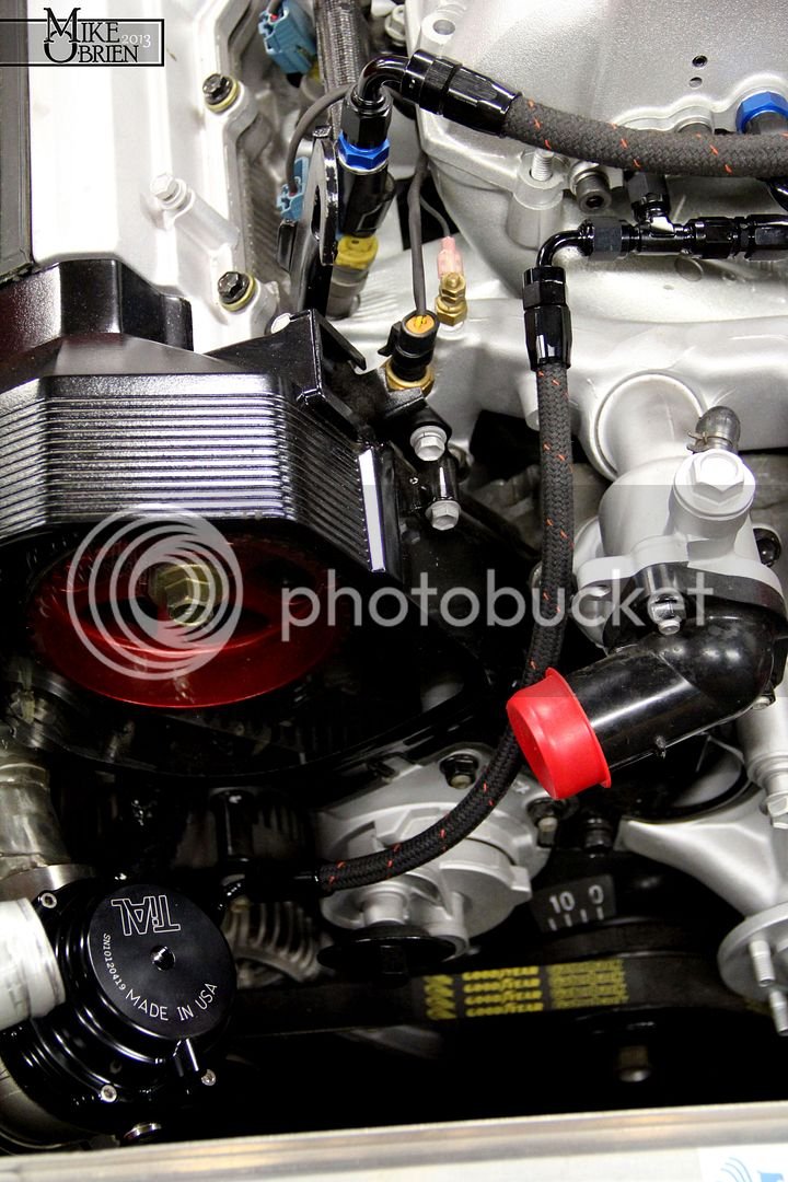 The front and rear ports are vacuum sources for the wastegate, BOV, map, and FPR. The front line to the wastegate and BOV are all plumbed with -4AN lines and fittings.