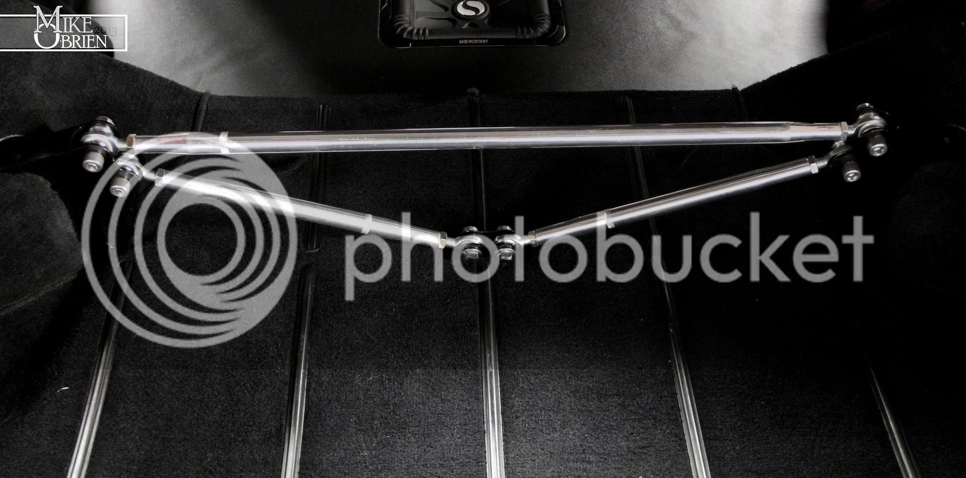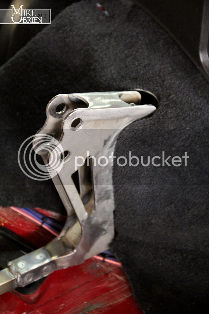 The funky windowed arms place the catch can at the right offset from the firewall, and height to the hood. The mounting arms are tapped for M6 bolts to secure the catch can to the mount.