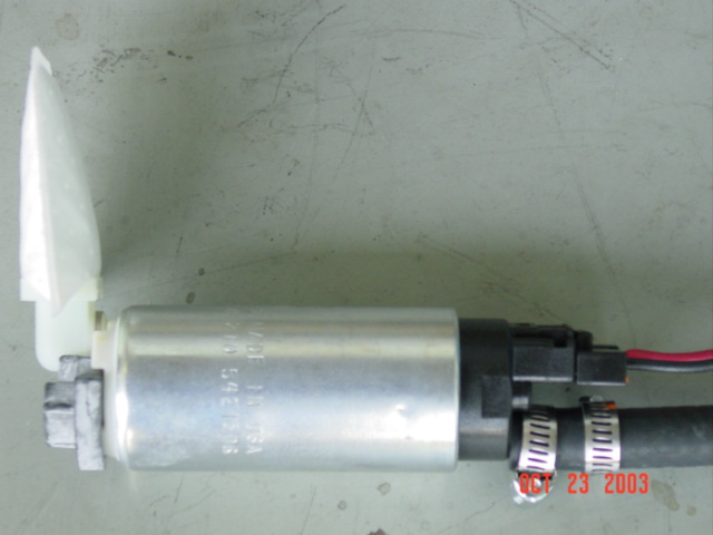 | A closer look at the OEM fuel pump. Use a 7mm and 8 mm to remove the wires or you can cut them. |