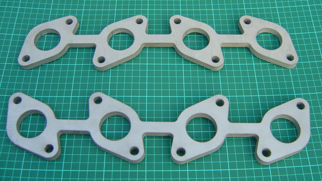 The holes will be slightly tapered so that the holes will be about 9.8 or 9.9 on one side. This is because if the nature of water jet cutting. The size has been left this way so that you can use maybe a 10.2 drill to create a nice snug fit to your own head studs. Other manufacturers may cut the holes bigger to start with, but I believe this way is better as it allows for much greater accuracy for port matching.