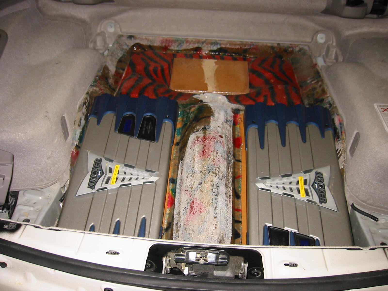 Custom enclosure that holds the NOS bottle. With custom made wood panels made to match the factory wood paneling.